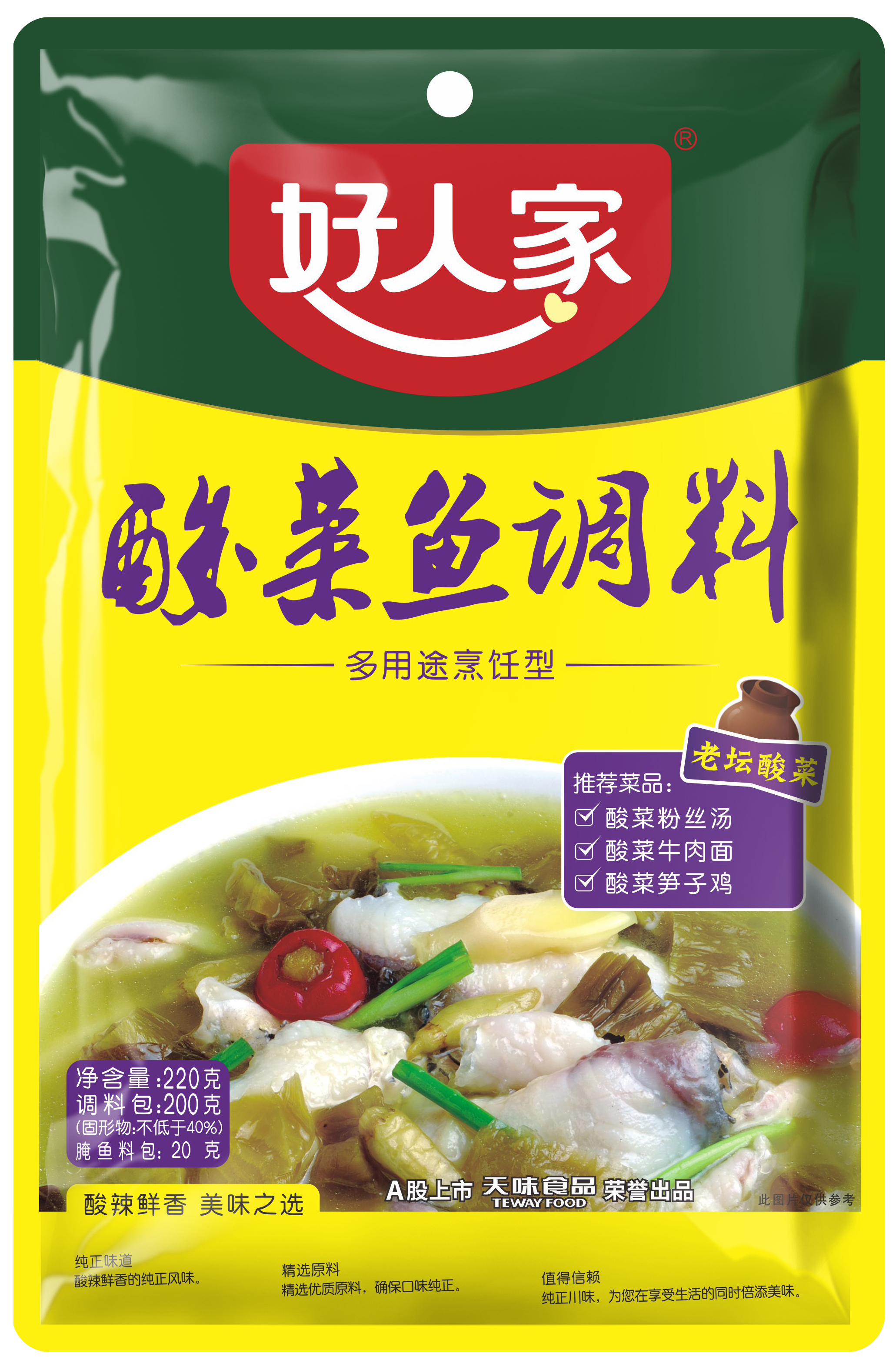 2000年5月,“好人家”誕生于四川省成都市,產品暢銷全國并遠銷海外,可謂家喻戶曉。“好人家”多次榮獲“中國綠色食品A級產品”“四川名牌產品”“中國馳名商標”等榮譽稱號,并以嚴苛的標準和純正的口味得到了消費者的認可。根據中國調味品協會調研統計,好人家在2019至2022年期間連續4年全國銷量領先*,產品全國累計熱銷13億袋,是國民餐桌美味的首選品牌。